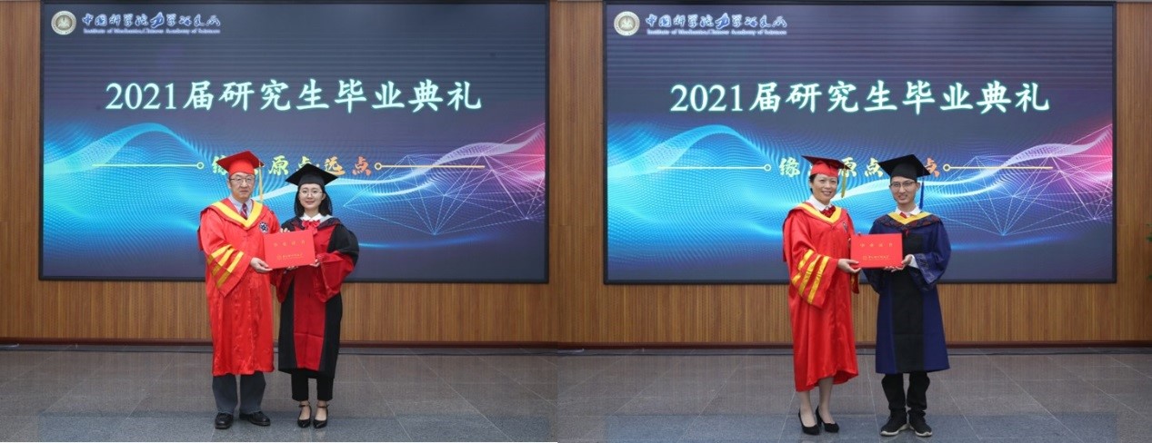 学位委员会主任孙泉华研究员分别宣读了“郭永怀奖学金”获奖者,“优秀毕业生”、“三好学习标兵”、“优秀学生干部”、“三好学生”获奖名单,本年度共83位优秀研究生获得表彰。以及力学所2020届学位授予名单和2021届拟申请博士学位的人员名单,共81名。2020届学位授予名单和2021届拟申请硕士学位的人员名单,共57名。何国威和刘桂菊分别为博士和硕士毕业生扶正流苏,并颁发毕业证书。