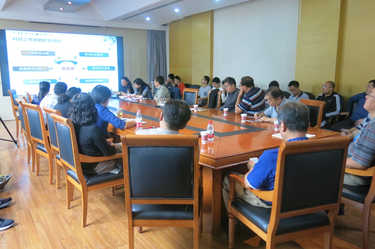 然后她结合研究所实际,通过大量生动、鲜活的实例,围绕“知行合一、扎实推进‘信念引领科研党建促进创新’”深刻分析了“知行合一,知什么;扎实推进,如何推;引领科研,怎么引。”她从老一辈共产党人、科学家以及力学所前辈们的事迹出发,深情讲述了什么是信念、信念的重要性、信念影响着品格和境界。同时通过一个个令人警醒的案例,阐述了忘了信念就会迷失方向。她讲述了力学所党委如何扎实推进“信念引领科研党建促进创新”主题活动,紧紧围绕研究所的中心工作,结合实际,创新方式,组织开展了迎七一演讲比赛、邀请郭传杰同志做“大科学家小故事”报告、组织党群骨干胶东行等系列活动,取得了很好的效果,以润物无声的方式实现信念引领科研。最后,她谈到,信念是引擎、是先导、是支撑,是科技工作者的责任、使命和价值的体现,她希望力学所人成为有责任、有诚信、有益他人的人,希望大家敢于担当,认真思考自己“能为力学所发展贡献什么,能为学生或年轻人表率什么,能为自己暮年回首留下什么。”她号召大家,坚定理想信念,做到知行合一,为力学所的可持续发展,为科技强国做出实实在在的贡献。