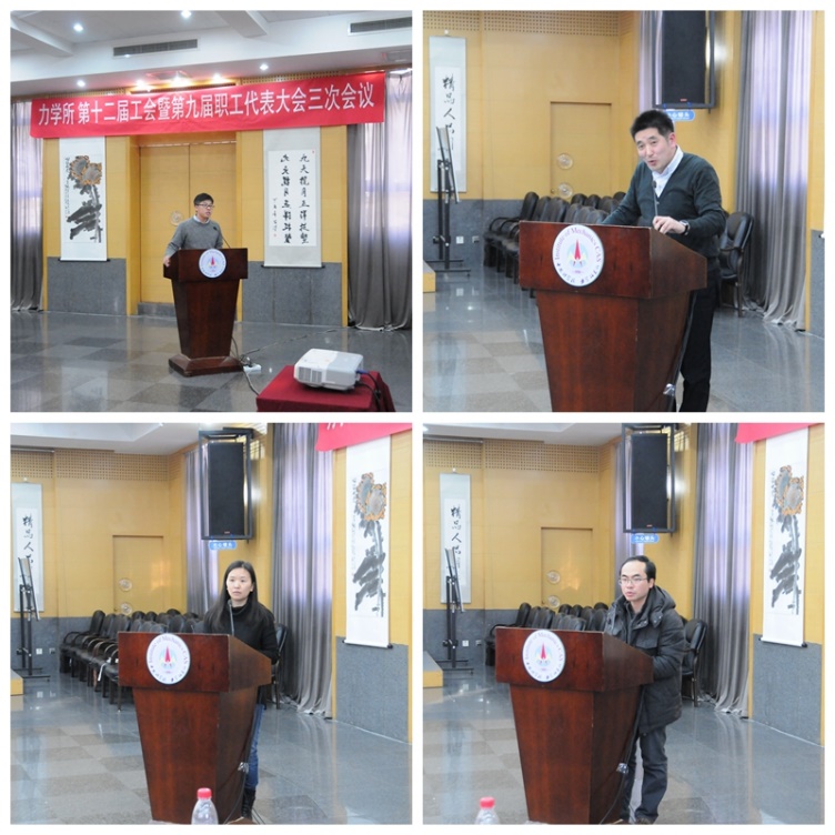 财务与资产处处长陈新向大会报告了力学所2017年财务收支及招待费使用情况。随后,会议进行了分组讨论,对研究所届中工作报告,工会/职代会2017年工作报告,研究所财务工作报告进行了审议。审议后,各小组代表做总结发言,对研究所各方面的工作都提出了很多、很好的建议。