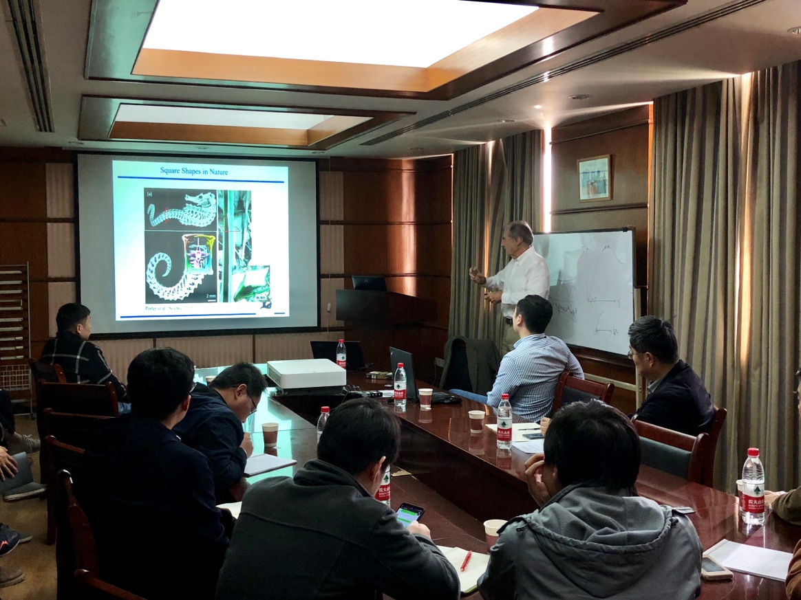 访问期间,Meyers教授在非线性力学国家重点实验室做题为“Biological Materials and Mechanics: Challenges and Opportunities”的学术报告,并与力学所的科研人员和研究生们就材料动态力学行为的研究热点、难点及发展方向等进行了广泛的交流,为进一步加强双方材料动态力学行为的实质性合作研究奠定了坚实的基础。