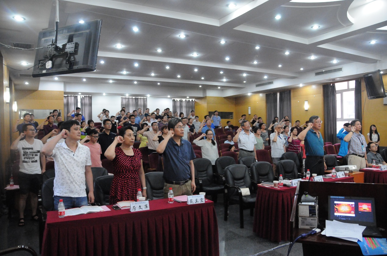 为纪念中国共产党成立97周年,深入贯彻党的十九大“不忘初心、牢记使命”的精神,力学所党委于6月29日开展主题党日活动,活动由党委书记、副所长刘桂菊主持,党委委员秦伟、戴兰宏、张新宇、魏炳忱、厉文萍等及全所党员职工150余人参加了活动。