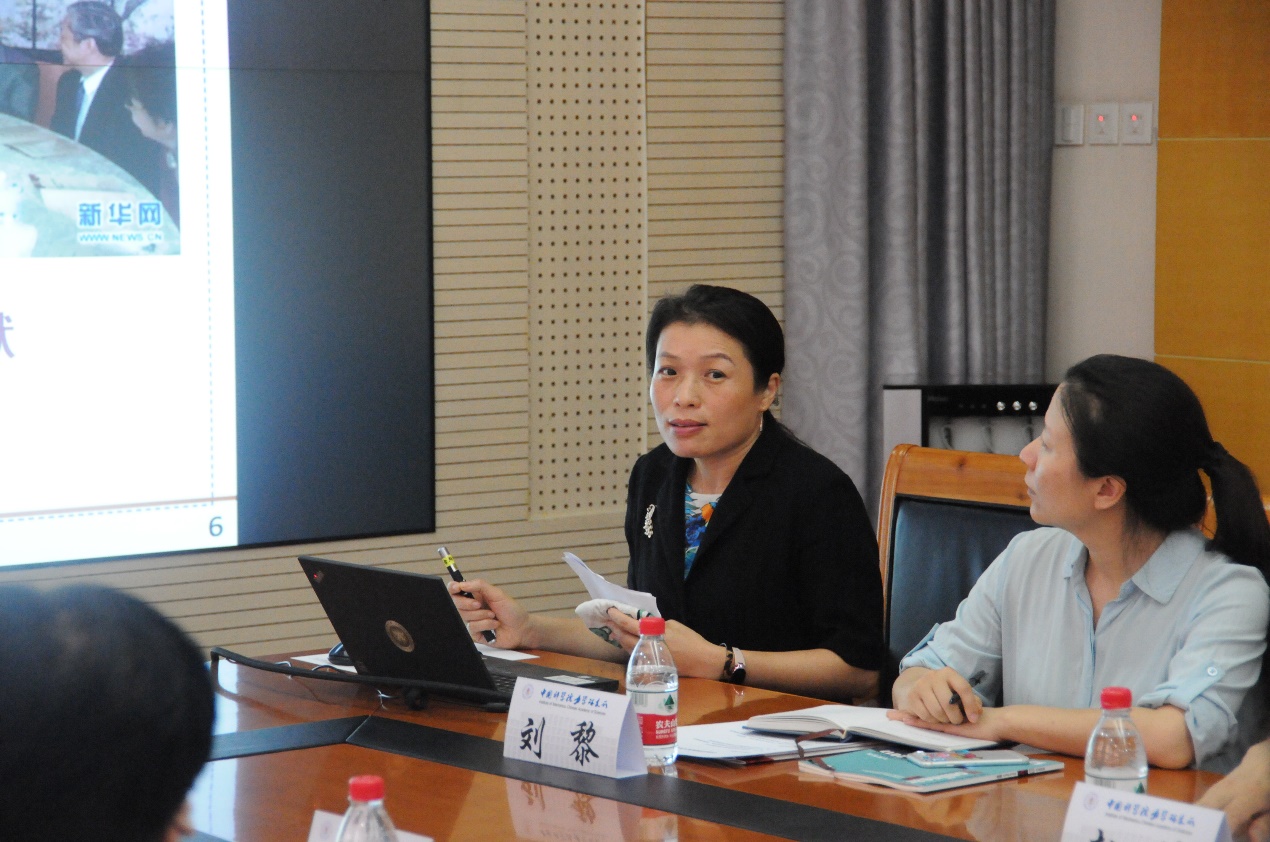 苏金鑫一行首先参观了非线性力学国家重点实验室、高温气体动力学国家重点实验室以及钱学森、郭永怀办公室。在交流座谈会上,刘桂菊从历史发展、组织结构、学科建设、人才培养等几个方面简单介绍了力学所的情况;在党建工作方面,刘桂菊首先介绍了力学所的组织建设及党员情况,随后着重介绍了力学所党建工作的基本思路,并举例介绍了所党建工情况,以及力学所在党建工作与业务工作相融合方面做出的努力与创新。