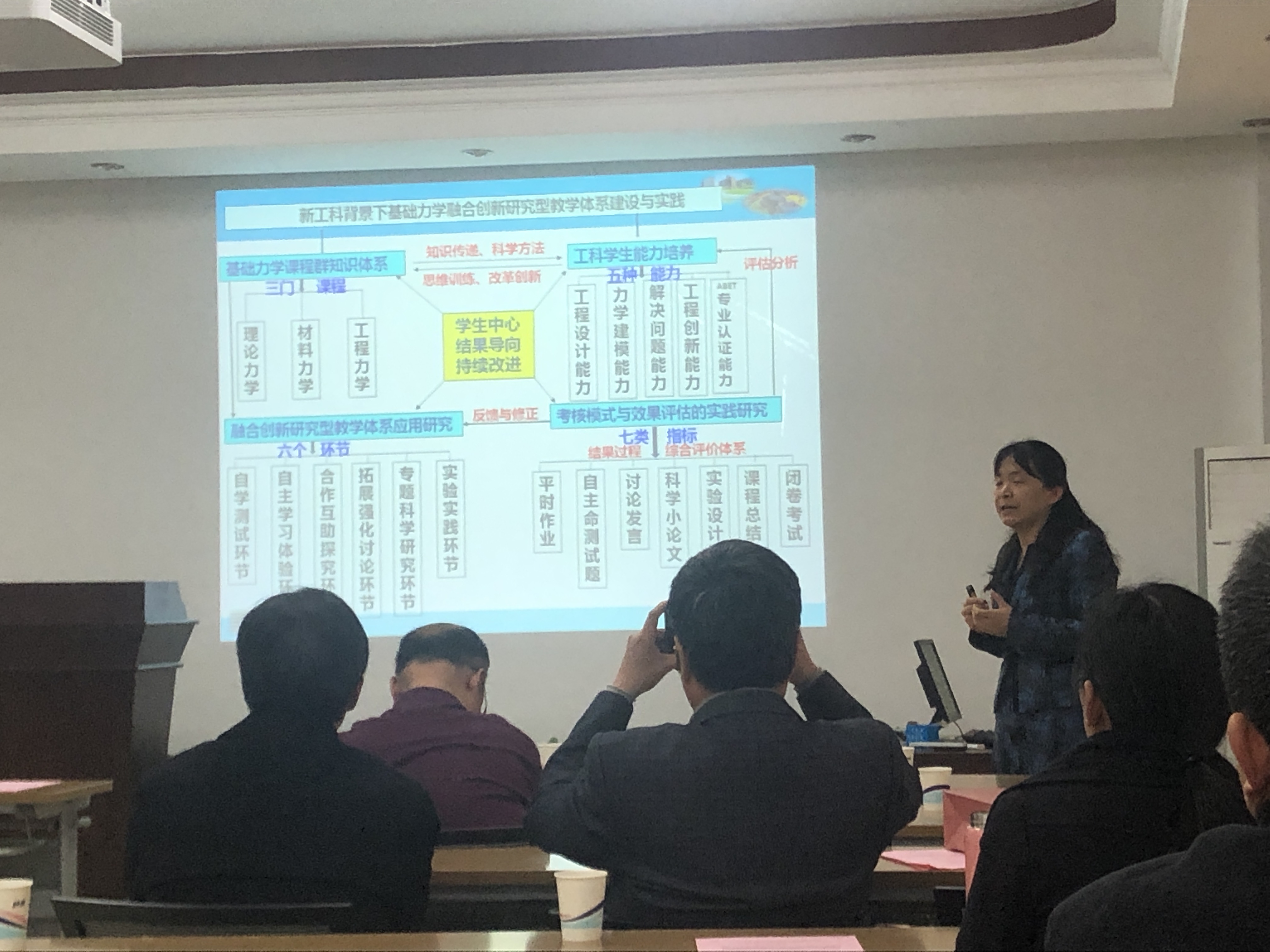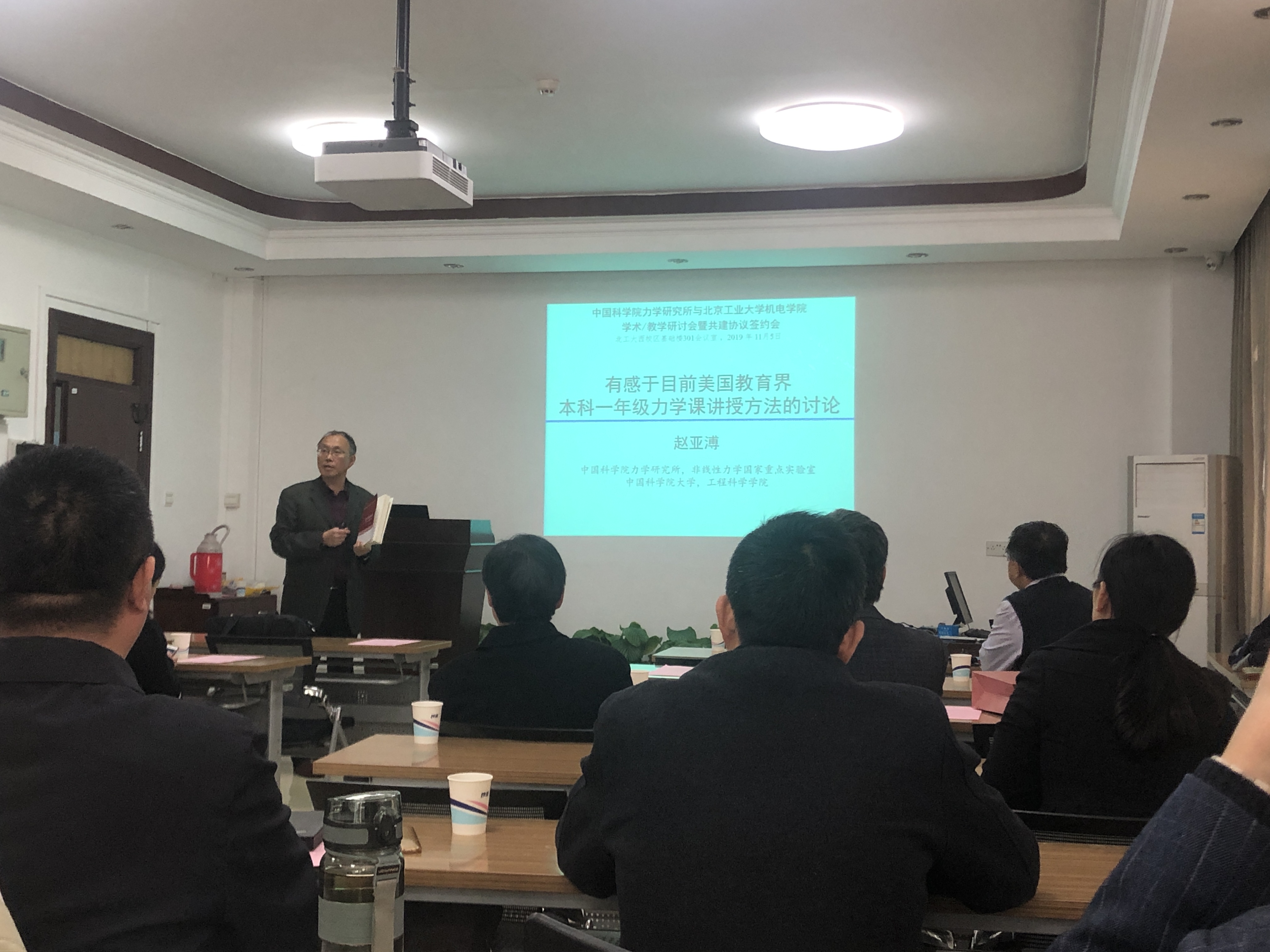 下午,双方进行了深入的教学经验分享与交流。力学所赵亚溥研究员、李新亮研究员分别做了题为《有感于目前美国教育界本科一年级力学课讲授方法的讨论》和《<计算流体力学>教学经验与收获》的报告。北工大杨庆生教授、叶红玲教授分别做了《漫谈混合式教学与课程思政》和《新工科背景下的力学课程教学》。并就本科生课程设置、教学经验进行了深入的讨论。
