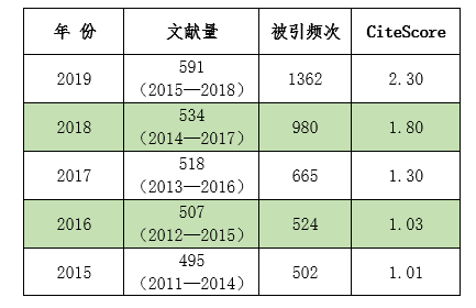表1 《力学学报》2015—2019年CiteScore引证数据