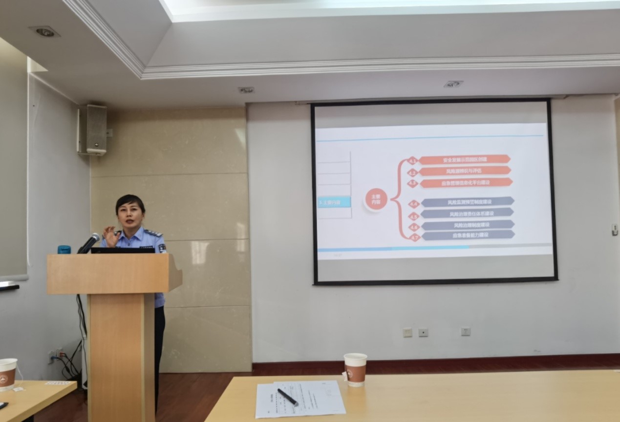中国人民公安大学韩春梅副教授作《不断推进科技园区风险治理体系和治理能力现代化》的专题讲座,她将城市安全管理理念引入到科技园区安全管理,分析了科技园区管理中存在的风险因素,强调了安全风险管理的重要性,并结合案例,提出了解决方案和治理措施。