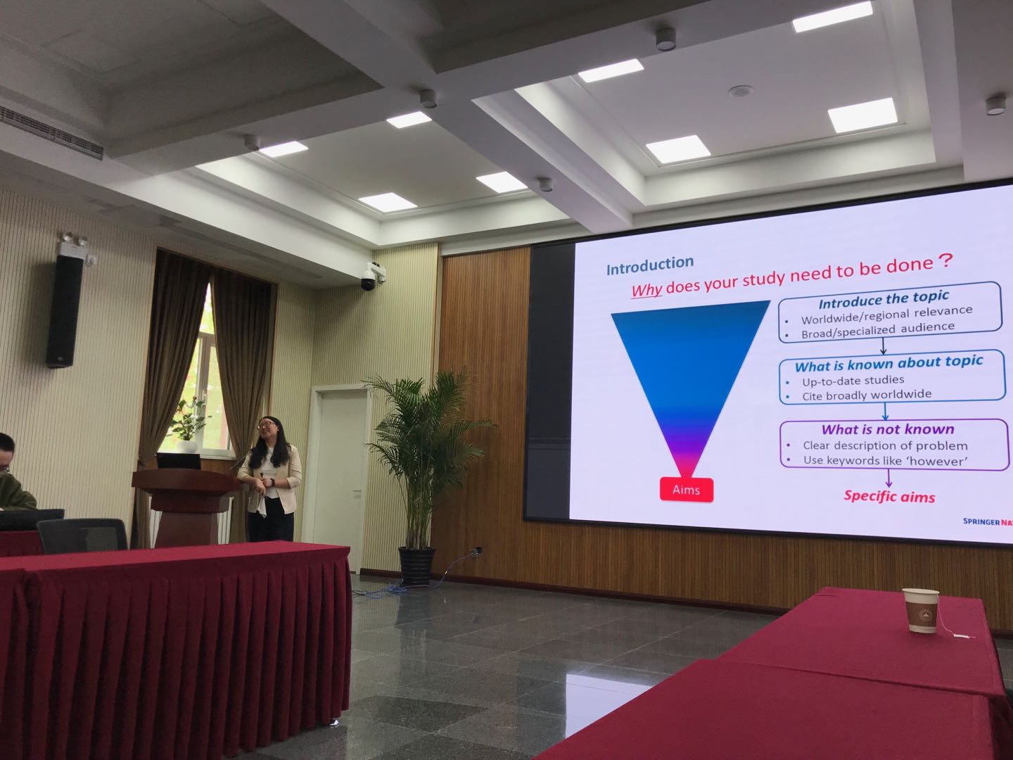 讲座邀请了SPRINGER NATURE学术顾问林菁菁博士主讲。林博士从学术论文结构的剖析与优化、如何选择合适期刊、投稿注意事项、与期刊编辑的沟通技巧及论文被拒后的处理建议等多个方面,结合自身的科研经历和学术出版专业经验,向参会人员分享了大量的经验、技巧和建议。培训中大家就论文结论的写法、如何快速查阅文献、cover letter的篇幅比例及论文语言表达与模板等问题进行了交流和互动。