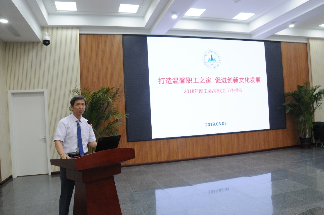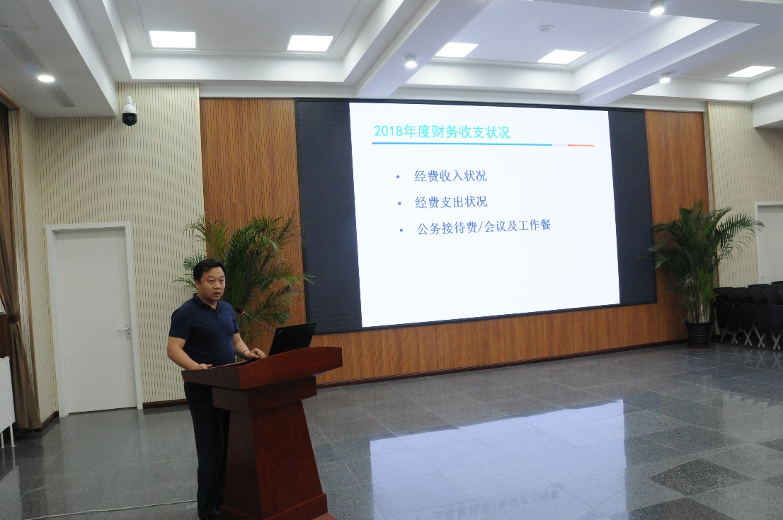 财务与资产处处长陈新向大会报告了力学所2018年财务收支情况。工会主席张新宇代表第十二届工会委员会作题为《打造温馨职工之家、促进创新文化发展》的工作报告,从民主管理、民主监督、平台搭建、文体活动、职工福利等五个方面汇报了工会/职代会过去一年来的工作,同时向全体代表通报了2018年工会经费收支情况,并简要介绍了2019年的工作重点及计划。大会审议并通过了上述报告。