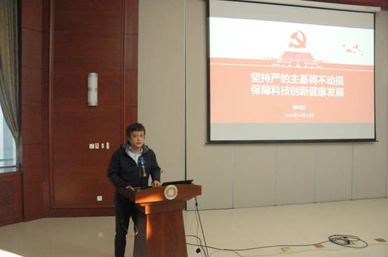 魏炳忱作了题为《坚持严的主基调不动摇 保障科技创新健康发展》的专题报告。他介绍了中央坚持严的主基调不动摇,一体推进不敢腐、不能腐、不想腐的工作部署,以及院党组深入推进全面从严治党的部署和安排,根据研究所内审工作中发现的一些问题,认真分析了所内个别职工在廉政意识、政策理解、严格管理等方面存在的不足,对管理部门、实验室提出了新的要求。