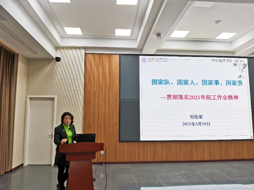 刘桂菊作总结发言,她强调各部门要把学习党中央及上级重要会议文件精神融入日常工作,深刻领会精神实质及内在要求;对照中科院改革创新发展的六方面总体要求,各部门要结合实际工作深入学习思考,直面问题并谋划改革发展,明确战略方向和发展思路;围绕2021年研究所重点工作,各部门、党支部要安排部署今年工作重点及主要举措,齐心协力以新气象新作为谋求研究所的新发展。