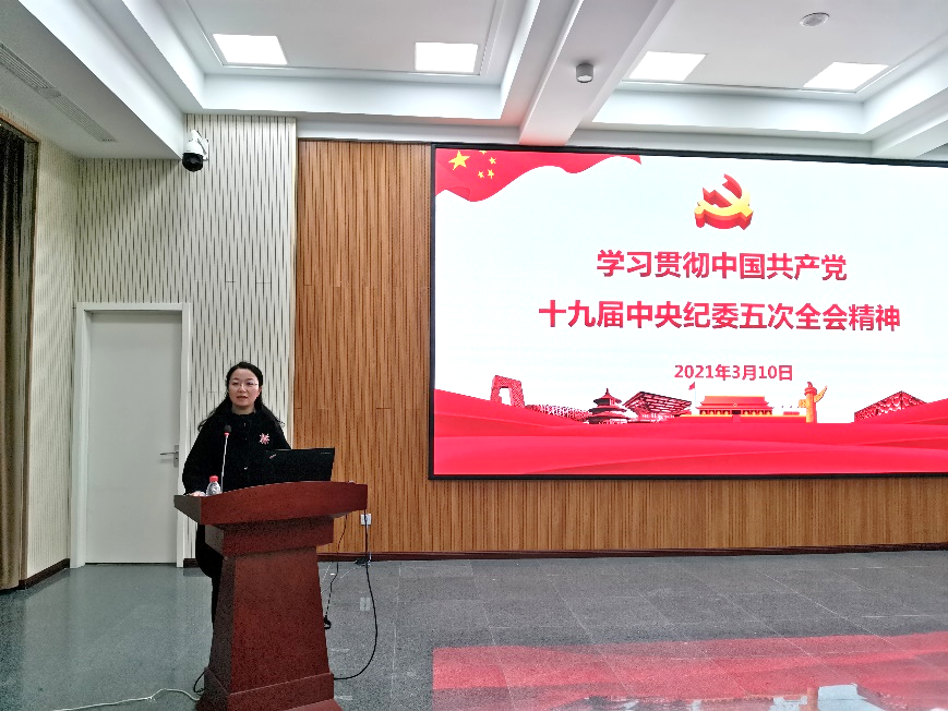 杨旭传达了习近平总书记在十九届中央纪委五次全会上的重要讲话和会议有关精神。习近平总书记在讲话中充分肯定了过去一年全面从严治党取得新的重大成果,深刻阐述全面从严治党新形势新任务,高屋建瓴、思想深邃、内涵丰富,是推进全面从严治党向纵深发展的重要遵循。她强调,各党总支、党支部要认真部署,采取学习研讨、座谈交流等方式增强学习效果,确保落到实处。随后,带领大家学习了新修订的《中国共产党党员权利保障条例》,阐述了《条例》修订的背景和意义,从5个问题出发重点介绍了《条例》的主要内容。她强调要把学习宣传贯彻《条例》作为一项长期重要任务抓紧抓好,各党总支、党支部通过“三会一课”、主题党日、党员培训、专家辅导、论坛讲座等形式组织党员开展学习研讨,确保学深学透。