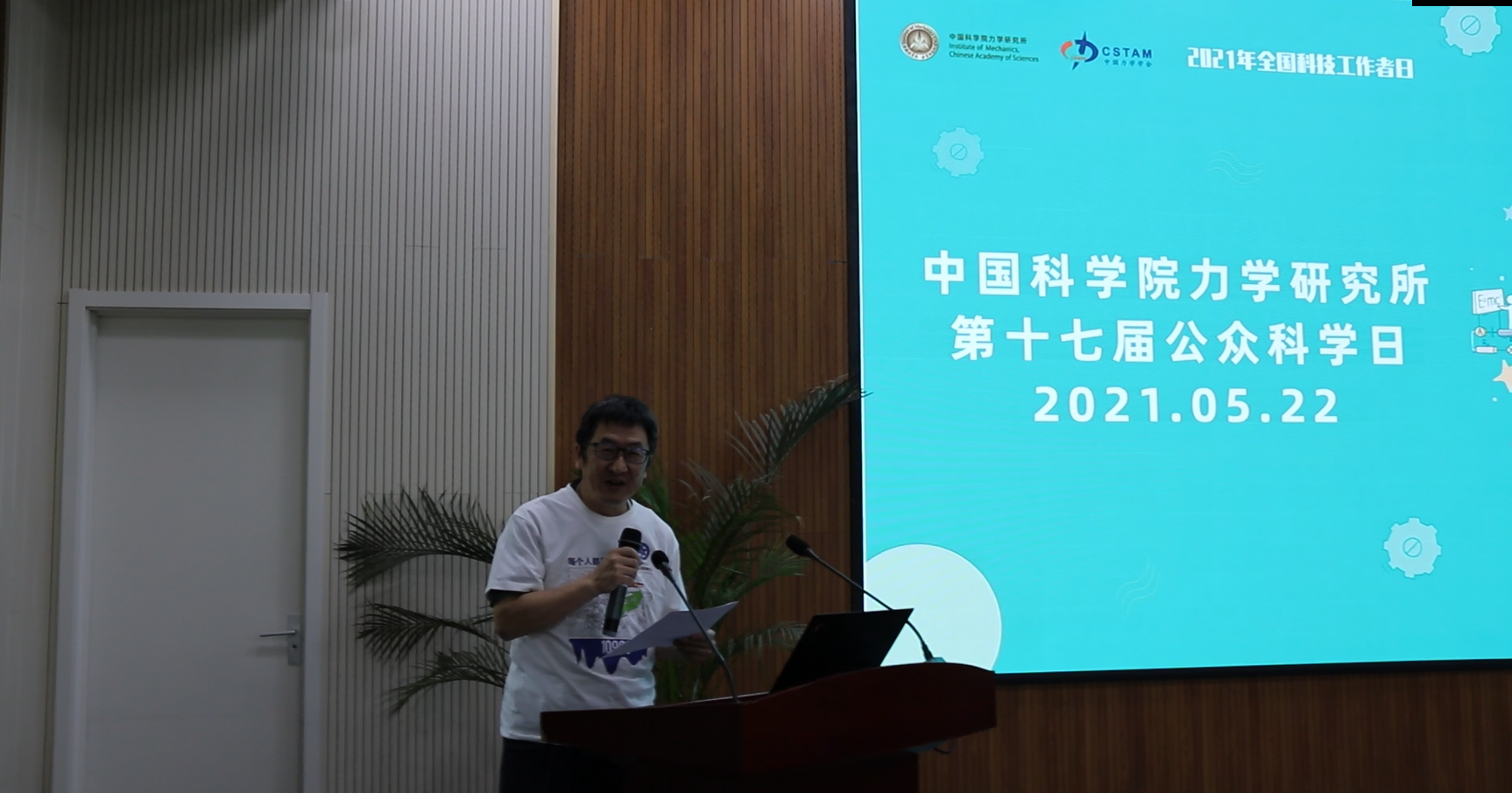 2021年5月22日,力学所举办了以“科学精神接‘力’传承”为主题的第十七届公众科学开放日活动。本次活动采用“现场活动+线上直播”的方式进行,现场参观人数2500余人,线上参与人数2200余人。力学学会办公室主任张自兵主持了现场活动。