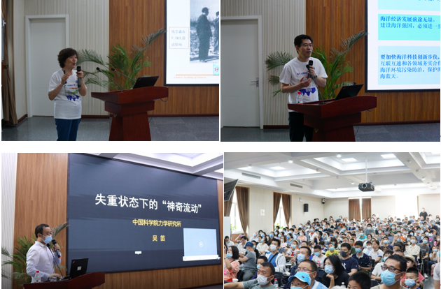 科普报告环节秉承了接“力”传承的理念,分别邀请力学所原副所长王柏懿研究员,2018年杰出青年基金获得者、流固耦合系统力学重点实验室副主任高福平研究员,微重力实验室青年科研人员吴迪副研究员从科学精神、深海油气资源开采以及失重状态下的神奇流动等方面为大家做了精彩的展示。