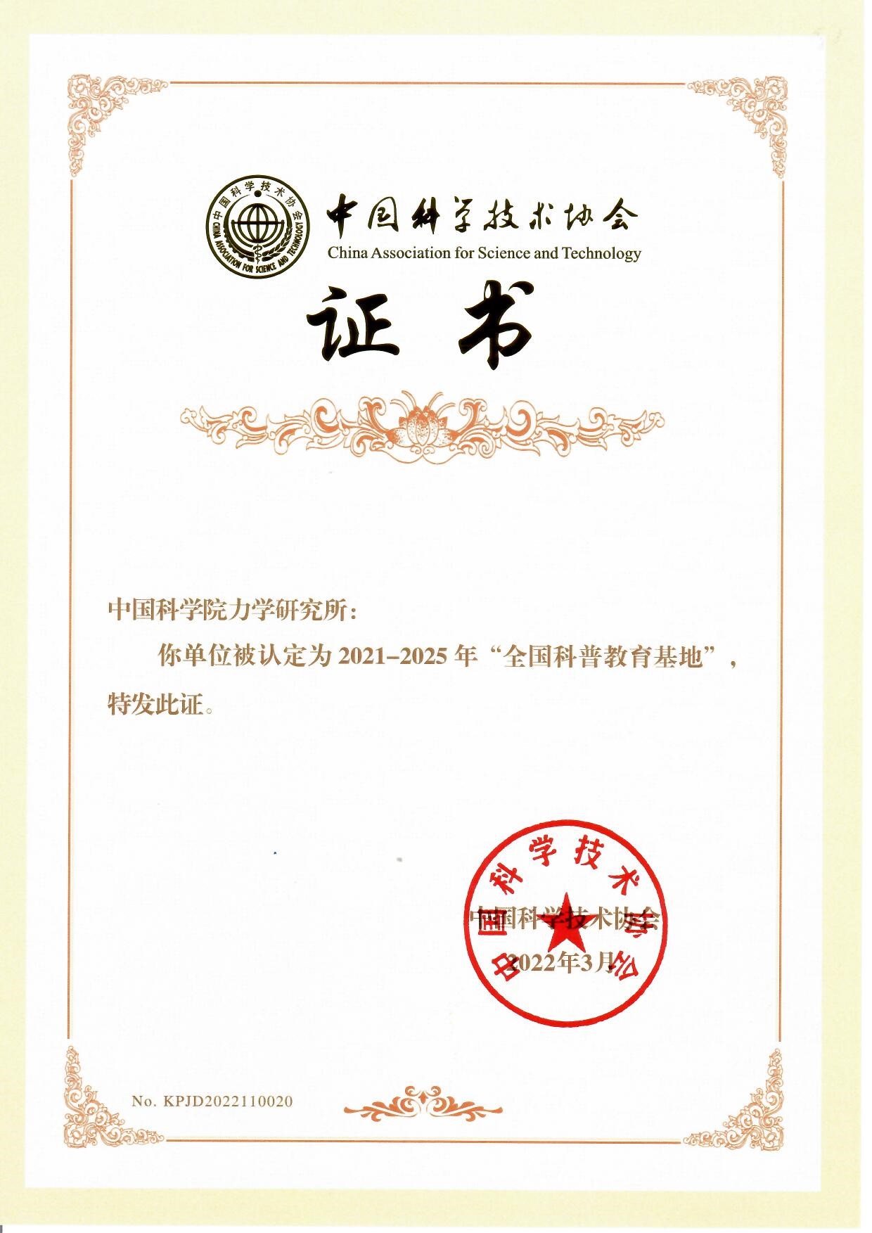 日前,中国科协公布了“2021-2025年度全国科普教育基地”名单,我所位列其中,成为首批被认定单位之一。