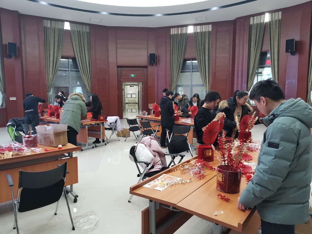 此次活动分为两部分:写春联和制作新春福桶。在写春联活动现场,书法家们纷纷挥毫泼墨,笔走龙蛇,书写出一幅幅寓意吉祥、充满祝福的春联,力学所参与人员一边欣赏书法家们的精彩表演,一边挑选自己心仪的春联。在制作新春福桶环节,每个人都发挥想象,动手制作出一个个精美、别致的福桶,福桶上都挂满了大家对于新年的祝福和期盼。