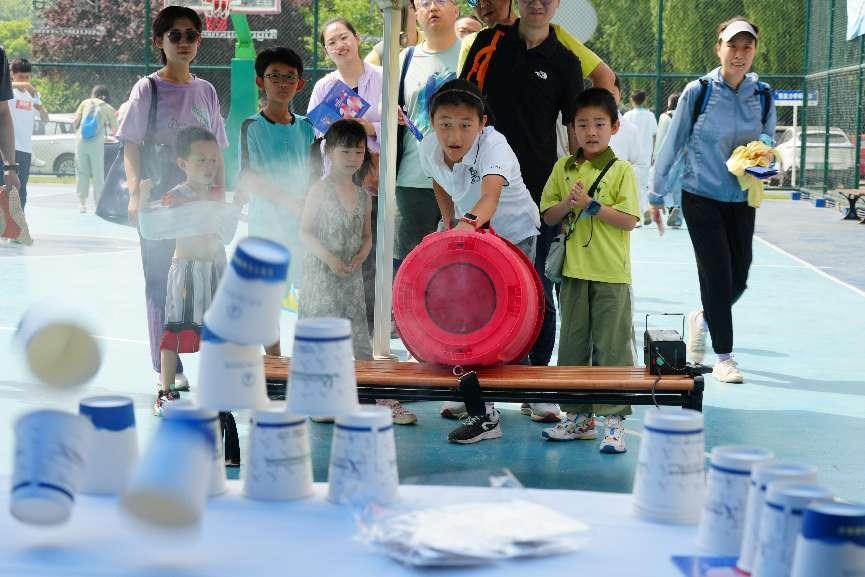 PLAY LAB游戏实验室设计了 “吃软不吃硬”、“巧取乒乓”、“振翅高飞”、“花样叠叠乐”、“超级空气炮”、“伯努利积木”等游戏项目。同学们跃跃欲试,开动脑筋,通过互动小游戏,深入体验了力学的乐趣。