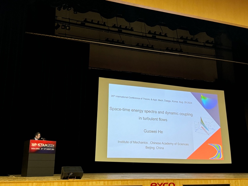 8月25日至31日,第26届世界力学家大会(ICTAM)在韩国大邱隆重召开。该会议是国际力学领域最高水平的学术盛会,每四年举行一次。本次大会恰逢ICTAM 100周年,吸引了全球两千余名学者参加,共设置十六个大会邀请报告。中国科学院院士、非线性力学国家重点实验室何国威研究员被推选作45分钟大会邀请报告。这是本次大会唯一来自中国的大会邀请报告,也是继2008年力学研究所胡文瑞院士之后,中国流体力学学者第二次作45分钟ICTAM大会邀请报告。