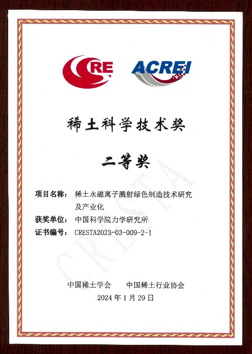 力学所荣获2023年度稀土科学技术奖二等奖