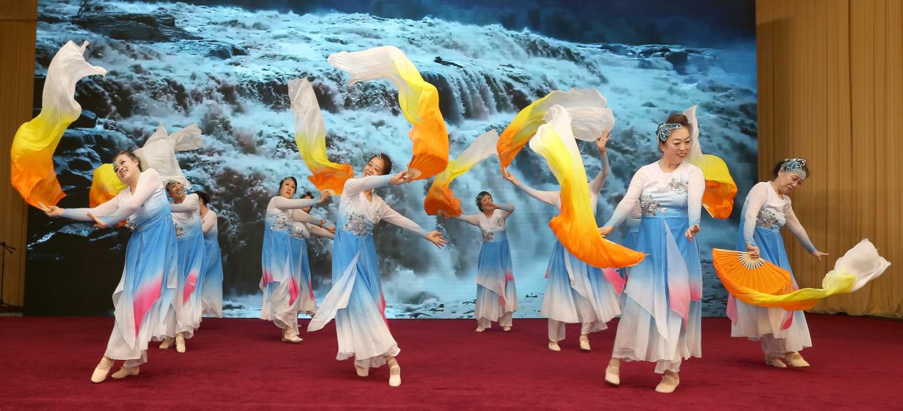 团拜会上,来自老科技工作者合唱团、体协柔力球协会、体协武术协会、舞蹈协会等京区协会,以及北郊舞蹈队,文献中心、力学所、高能所、中科印刷等片区及单位的代表们,为在场的观众带来了一场精彩纷呈的文艺表演。力学所作为参演单位之一,精心准备并表演了集体舞蹈《黄河水从我家门前过》。在悠扬动听的旋律伴奏下,老同志们以舒展、优美的舞姿,生动地展现了力学所离退休干部热爱生活、积极向上的精神风貌,赢得了现场观众的阵阵掌声。