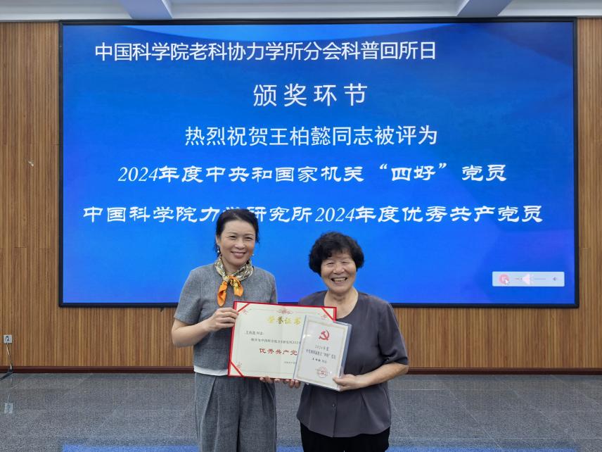 活动中,刘桂菊为分会顾问王柏懿研究员颁发2024年度中央和国家机关“四好”党员及力学所优秀共产党员荣誉证书,表彰其在弘扬科学家精神方面的突出贡献。王柏懿研究员发表感言,感谢力学所的推荐以及分会同仁和离退休同志的支持。她表示荣誉属于集体,并充分肯定第七届理事会在陈宏理事长带领下取得的扎实进展,期待新一届理事会再接再厉、再创佳绩。