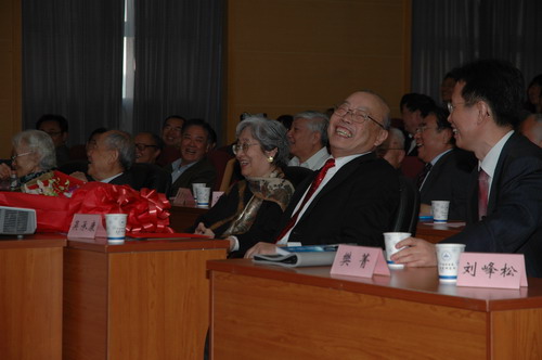 力学所李和娣副所长主持开幕仪式。樊菁所长致贺辞,并代表力学所全体人员向吴承康先生及夫人黄兰洁先生献花,祝他们生活愉快,健康长寿。中国科学院院士工作局刘峰松副局长宣读了全国人大常委会副委员长、中国科学院路甬祥院长发来的贺信。李家春院士宣读了国际燃烧学会现任主席Westbrook和前任主席罗忠敬两位教授的贺信。郑哲敏院士、俞鸿儒院士、李佩先生以及与吴先生一同工作过的老、中、青代表詹焕青研究员、盛宏至研究员、张宇副研究员发表了热情洋溢的讲话。他们高度赞扬了吴先生在五十余年科研工作中取得的丰硕成果和对国家做出的卓越贡献,感谢吴先生在工作和生活中细心的关怀和帮助,并对吴先生认真严谨、公正正派、平易待人的工作作风和高尚品格表达由衷的敬意。