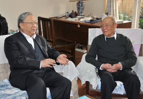 在俞鸿儒院士家中,路甬祥院长与俞先生探讨了实验研究与实验装置建设问题。路院长指出,力学所要坚持做有创新思想的特种装置,要给予一定的政策支持,稳定年轻人从事实验研究。俞先生提出,有些工作需要几百年的工业基础,跟踪国外比较困难,应另辟蹊径。路院长对此表示赞同。他热情邀请俞鸿儒院士做相关领域的战略咨询专家。