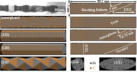 宏观尺度上,陶瓷在室温条件下很脆,但是当结构的特征尺寸减小到纳米尺度时,材料出现了一些新颖的行为。例如,最近实验观测到SiC纳米线存在室温大塑性变形行为,然而大多数现有理论分析仅限于弹性行为和脆性破坏。来自澳大利亚(Curtin University, University of Sydney),中国(北京航空航天大学、中国科学院和香港城市大学)以及美国(Brown University)的科学工作者合作填补了这些失去的情节。