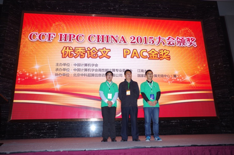 2015全国并行应用挑战赛(PAC2015)于11月12日在江苏无锡召开的“2015全国高性能计算学术年会”上圆满收官。由我所李新亮研究员及中科院网络中心张鉴副研究员作为指导教师,张天文(队长)、陈哲、刘夏真三位研究生组成的“中科院计算机网络信息中心-中科院力学所联队”,围绕自主开源软件OpenCFD优化与应用,历经资格赛、初赛、复赛、决赛四个阶段之后,最终从229个全国知名高校、研究机构、超算中心参赛队伍中脱颖而出,夺得了“最佳应用”金奖。