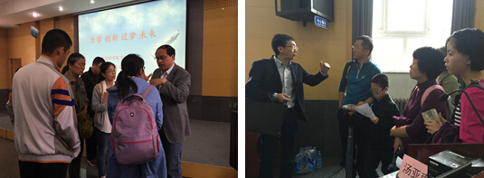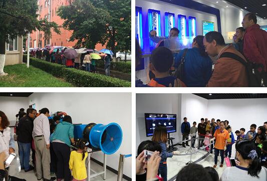 “趣味力学科普展室” 共分为“力学星空”、“实践园地”、“实验观摩”、“力学阅读”、“知识测验”五大区域。因展品丰富、展示形象,互动性好,科普展室成为本次科学日活动的热点,许多人冒雨排队参观。