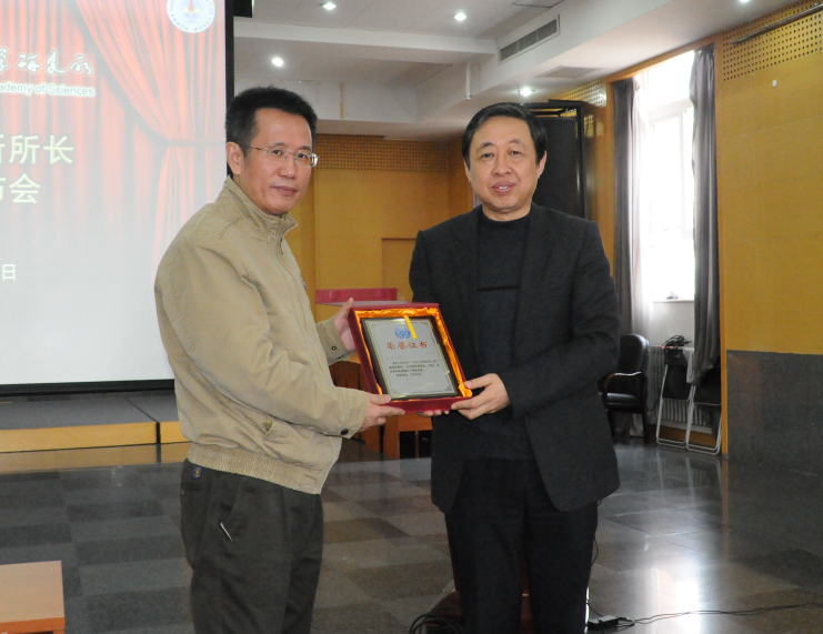 何岩向樊菁颁发了荣誉奖牌。他首先代表院党组对樊菁在过去十几年为力学所改革、发展、稳定做出的贡献表示衷心感谢。并肯定了力学所过去的两届所领导班子认真贯彻院党组的各项战略部署,明晰战略定位,合理布局科研方向,重视前瞻和基础研究,扎实推进“一三五”规划,科研工作取得了良好的发展势头,取得了一批重大突破性成果和原创性成果,在推动承担国家战略任务、科研装备和条件建设方面也做出了较好的成绩。