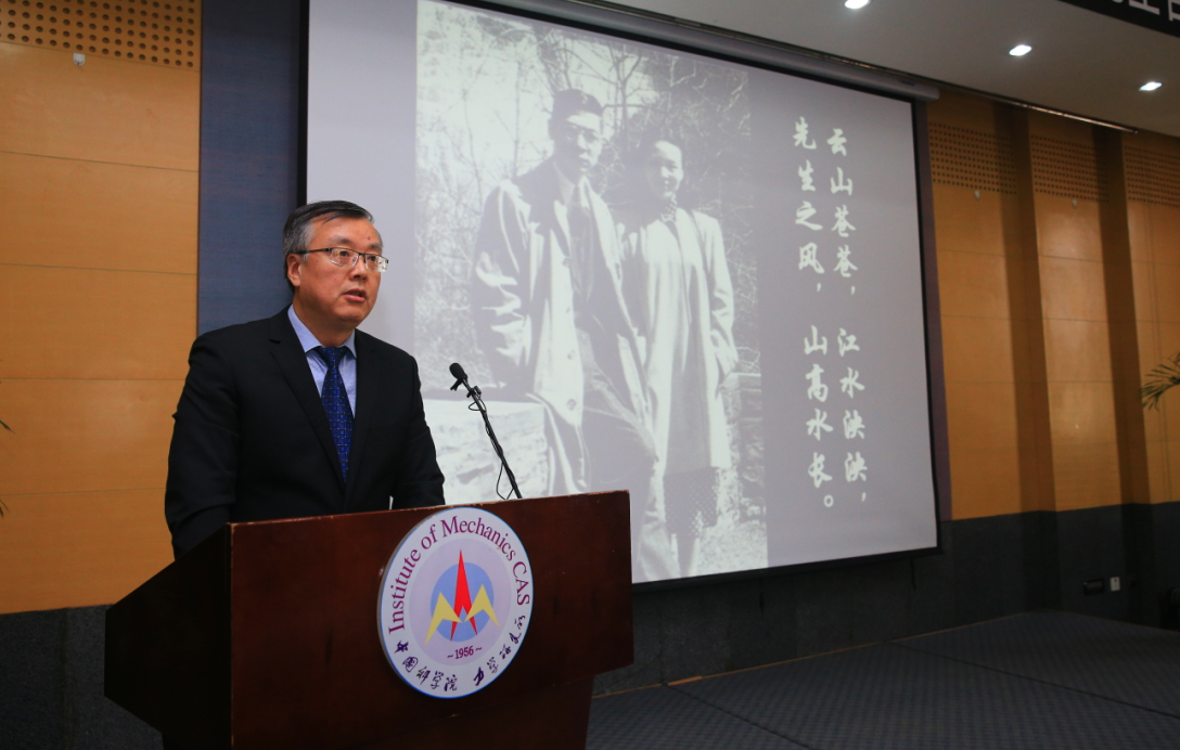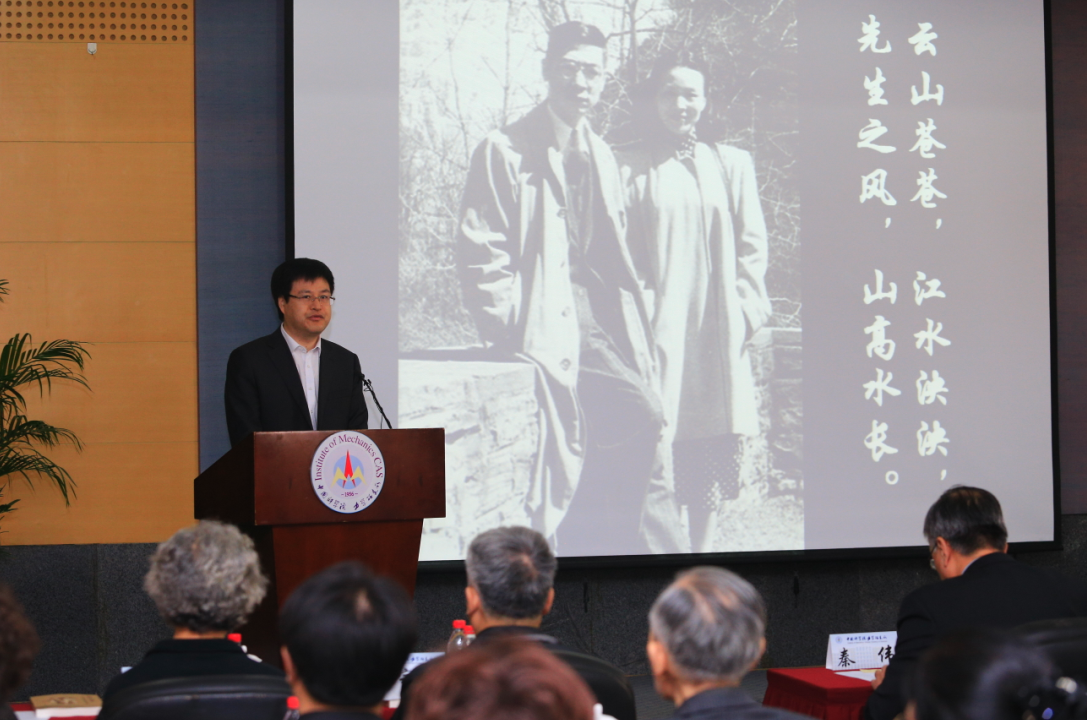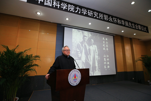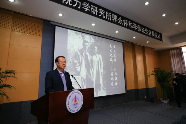 中国科学院力学研究所所长秦伟代表力学所全体员工,对出席仪式来宾表示衷心的感谢。郭永怀先生回国后,长期担任力学研究所副所长,参与了12年科学技术发展远景规划,与钱学森先生一起高瞻远瞩地制定了我国力学学科的发展规划和目标,并规划了我国高等院校力学专业设置。李佩先生回国后非常支持郭永怀先生在力学所的工作,非常关心力学所的研究生们,困难时期,先生将家中的粮票节省下来,让郭先生分给力学所的青年人。退休后,先生依然十分关心力学所的研究生,经常参加研究生组织的各类活动,每年12月5日,都来力学所参加研究生组织的郭先生牺牲纪念活动。力学所一直都是李佩先生的家,力学所人就是先生的家人。两位先生大爱无疆激励着后人,郭永怀和李佩先生相识相知在校园里,相协回故国,相伴中关村,他们对国家的爱,对事业的爱,对普通基层人员的爱,感染了一代又一代人,力学所全体同志将永远怀念郭永怀和李佩先生,他们的事业将激励和引导广大科技工作者继承和发扬老一辈科学家的优良传统,积极投身科技创新实践活动中,为国家,为科学院,为力学所的发展贡献力量。