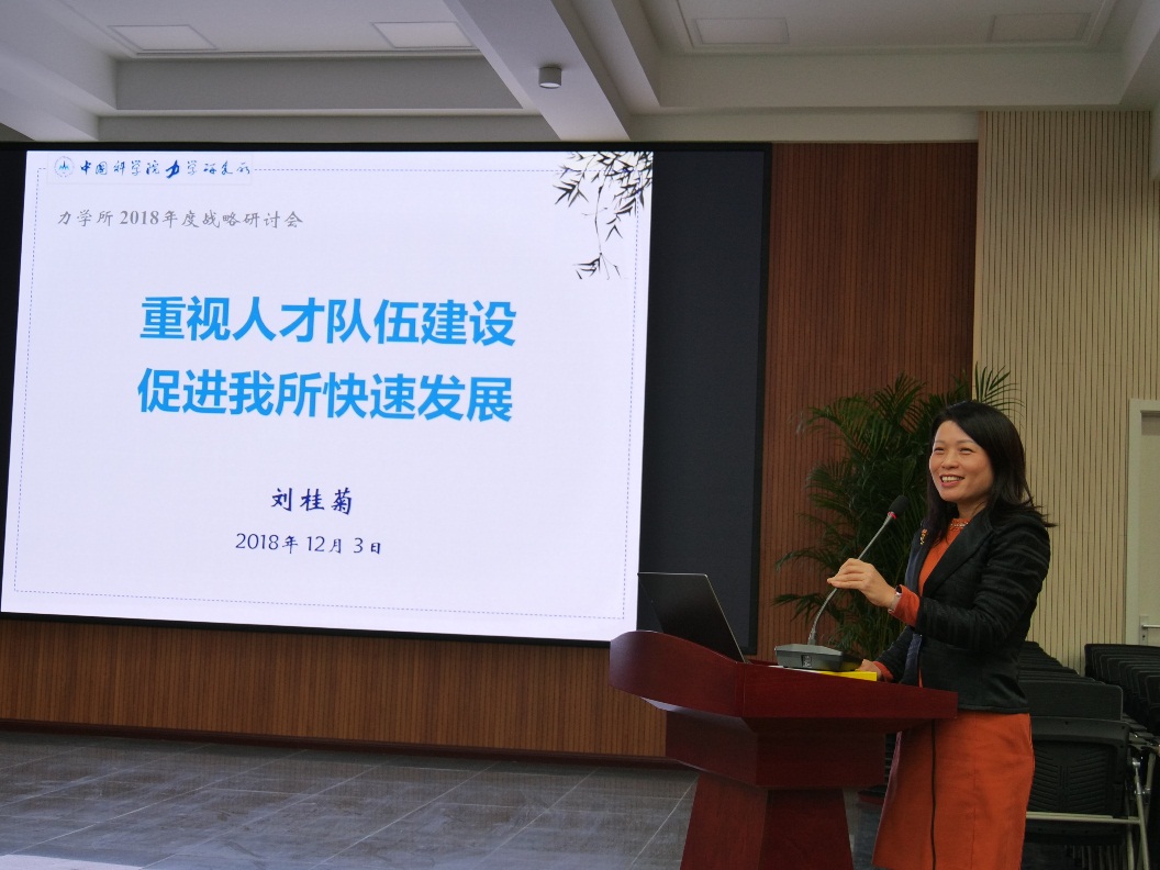 刘桂菊作题为“重视人才队伍建设,促进我所快速发展”的报告,通过我所的案例,强调了重大成果背后是人的关键作用。在分析我所人才队伍现状及面临挑战的基础上,谈了进一步加强我所队伍建设,对“十四五”人才资源规划的总体原则、主要举措、发展目标等提出了思考。她鼓励全所科研人员要有创新自信,挖掘创新潜力,管理与支撑人员要进一步提升管理效能,大家团结一致,共创力学所的未来,“重振力学所雄风,从我做起,从现在做起。”