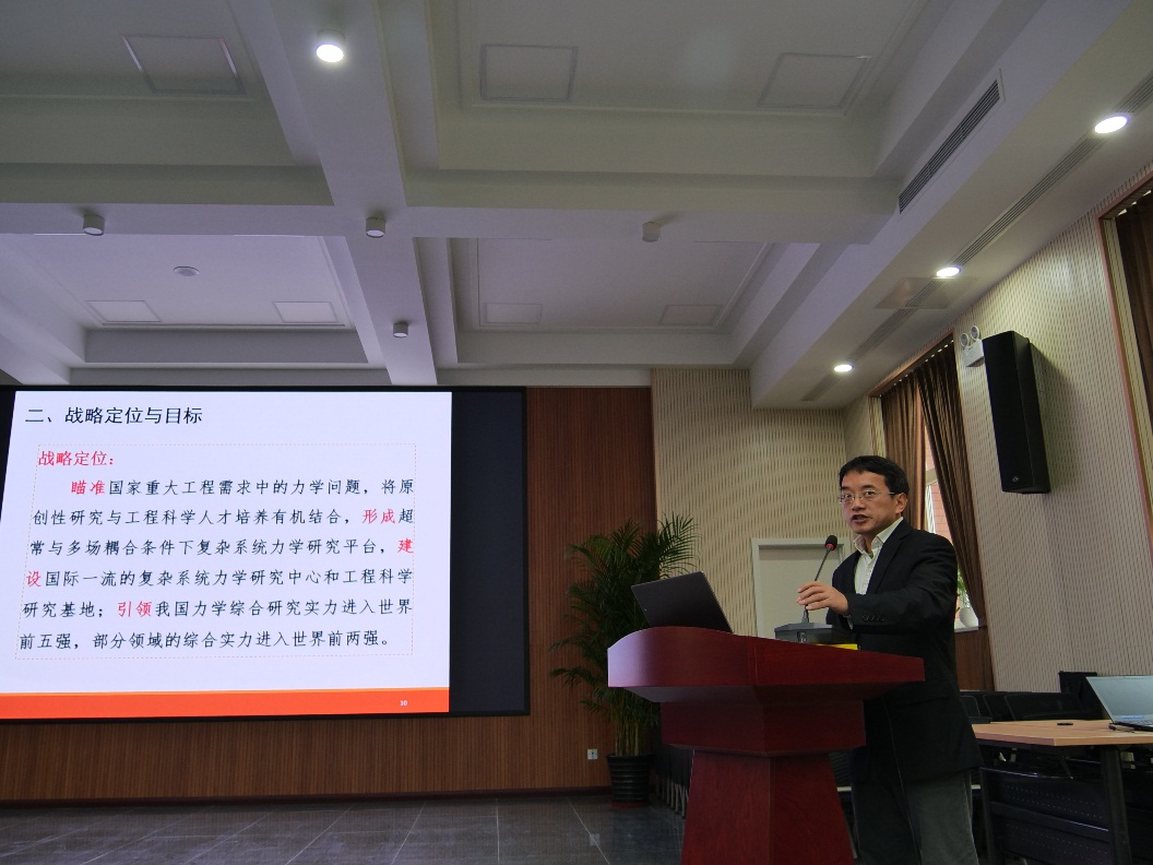 魏宇杰就复杂系统力学卓越创新中心的成立历程、战略定位与目标以及各领域布局方向等作了介绍。非线性国家重点实验室、高温气体动力学国家重点实验室、中科院微重力重点实验室、中科院流固耦合系统力学重点实验室、先进制造工艺力学重点实验室及空间飞行科技创新研究中心(筹)分别汇报了其发展战略。