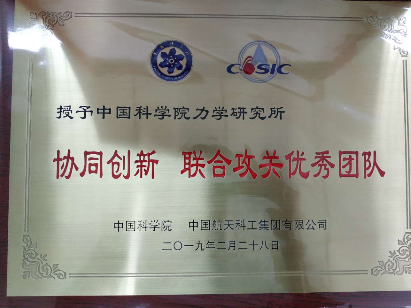 力学所获“中国科学院和中国航天科工集团有限公司协同创新、联合攻关优秀团队”荣誉称号