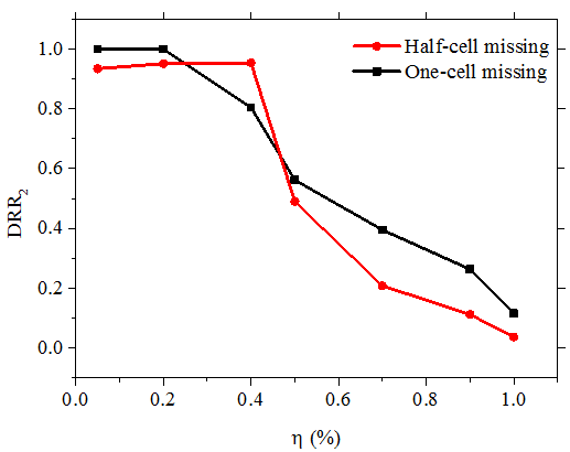 1/2胞元缺失随着填充物物性参数变化的识别效果