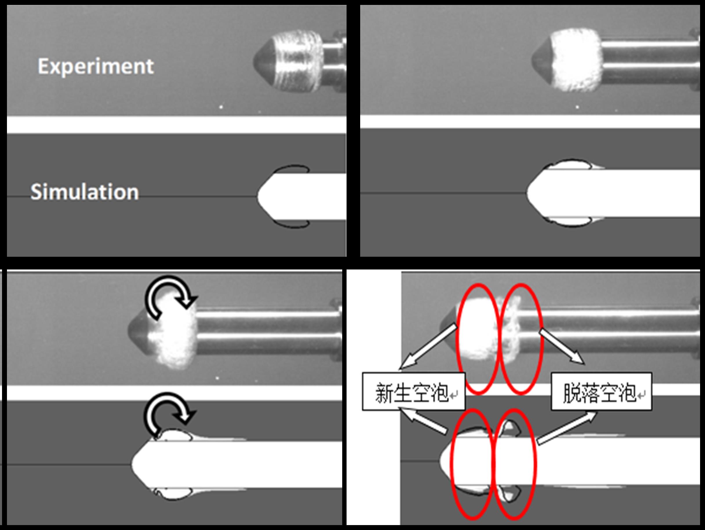 利用该模型,研究人员对云状空化流动的机理有了更进一步的认识:获得了更丰富的流场信息,揭示了空化区从透明层状空泡向不透明云状空泡的演化机制:回射流与空泡的相互作用。回射流越强,空化区越容易破碎成小气泡。