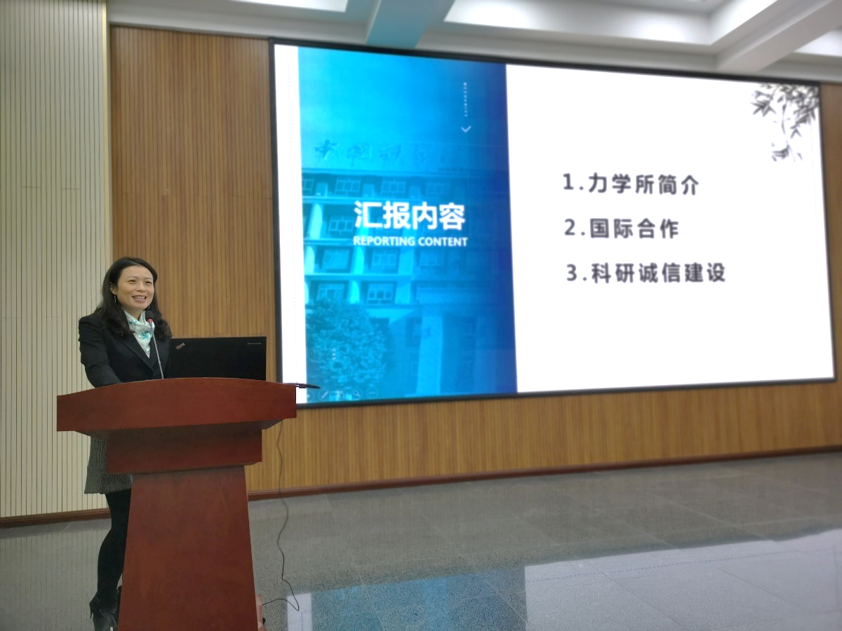 在座谈会上,刘桂菊从研究所定位、学科布局、组织机构、人员情况、科研项目、科教融合、成果产出等多方面汇报了力学所的基本情况。介绍了力学所在国际交流与合作项目、国际会议以及人才引进等方面的做法和成绩,分析了问题与不足,提出了具体工作思路和举措。汇报了力学所通过加强组织领导、强化宣传教育、健全制度规范、突出工作重点,推进学风和科研诚信建设工作取得的成效,以及下一步工作方向和目标。