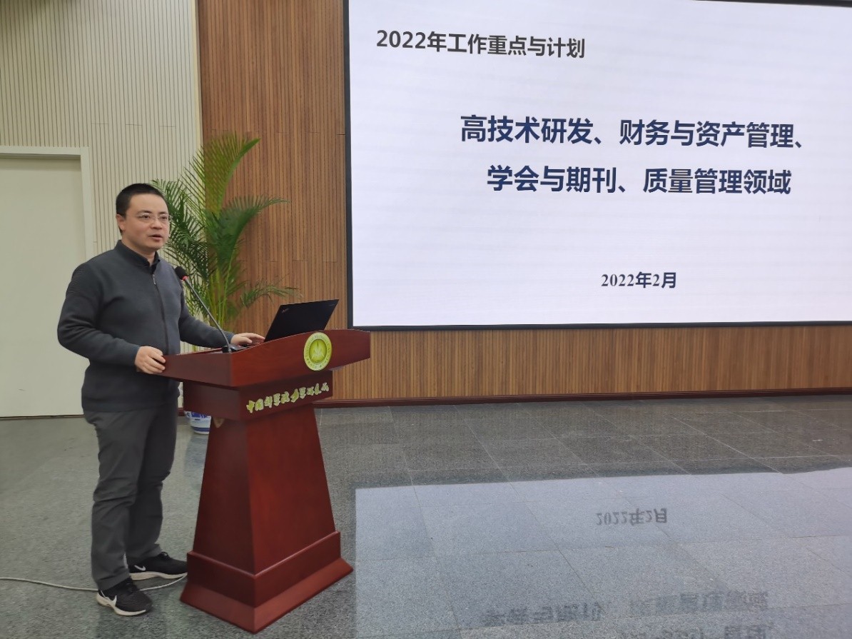 会上,副所长魏炳忱作了《科技处、教育处、基建与园区管理处2022年重点工作》的报告。副所长黄河激作了《高技术研发、财务与资产管理、学会与期刊、质量管理领域2022年工作重点和计划》的报告。党委副书记、纪委书记杨旭从党建、纪检、保密和档案等四个方面汇报了2022年度工作思考。结合所领导班子成员的报告,各实验室负责人纷纷发言,为推动研究所高质量发展献言献策。