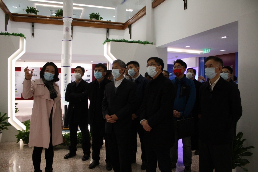 徐占斌一行参观了力学所展室和高温气体动力学国家重点实验室相关设备,听取了力学所关于实验室建设的情况汇报。