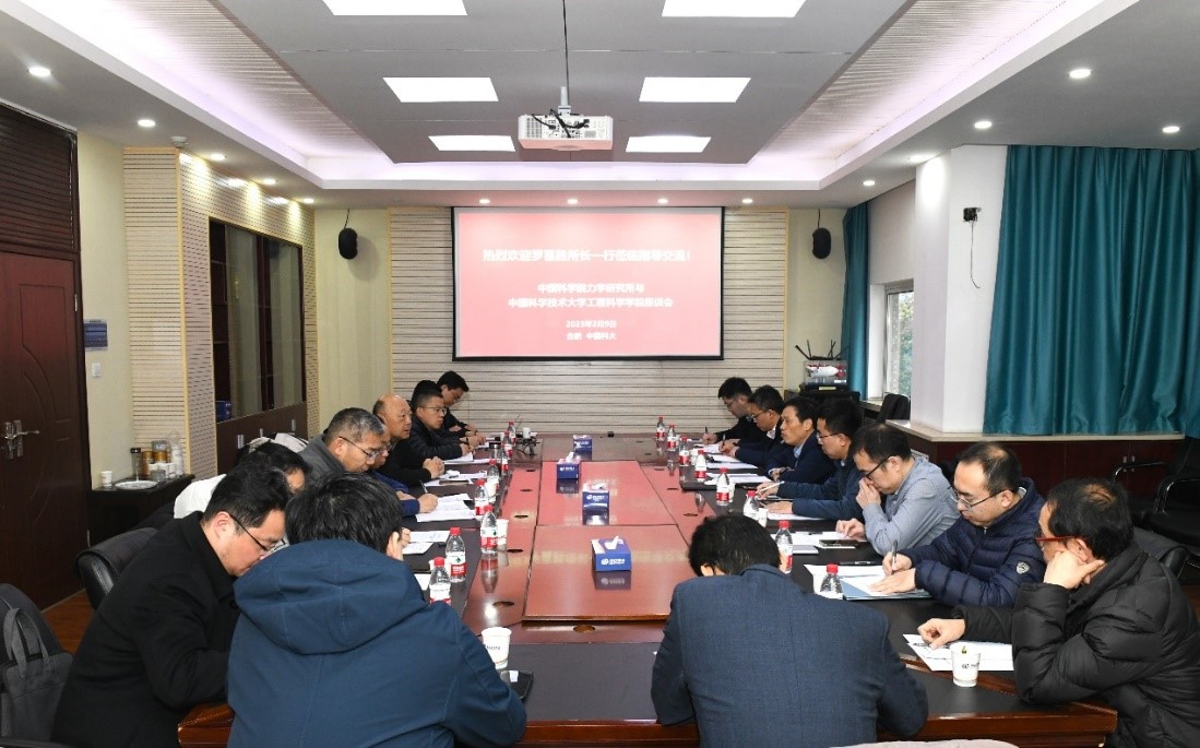 2月9日上午,罗喜胜带领力学所相关职能部门负责人赴中国科大工程科学学院就科教融合相关工作进行座谈交流。工程科学学院学术委员会主任陆夕云院士、执行院长吴恒安,党委副书记赵凯,副院长倪勇、裴刚、司廷,校对外联络与基金事务处副处长王奉超,中国科大研究生院综合与所系结合办公室业务主管陈宇,近代力学系执行主任李二强、教学主任王海龙、副主任马宏昊、程万特任教授与相关教师出席会议。会议由吴恒安主持。