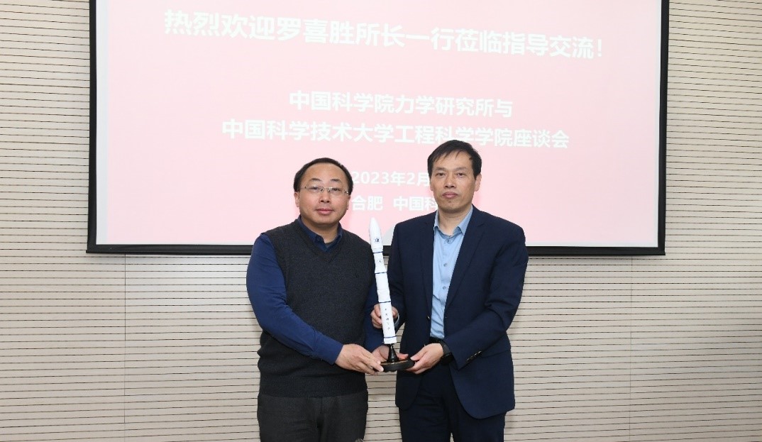 会后,罗喜胜、包信和分别代表力学所与中国科大互赠了纪念品。