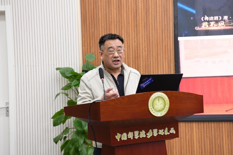 刘桂菊鼓励力学所青年人要传承钱学森、郭永怀等老一辈科学家精神,以杰出前辈为榜样,勇于担当,筑梦力学所未来;希望青年人在力学所提供的平台上扬帆起航,勇创辉煌。