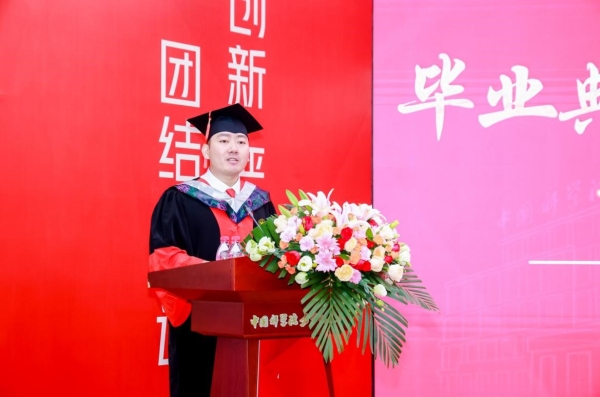 2018级博士生王富帅作为毕业生代表发言。他向一路陪伴自己成长的所领导、老师、同学、亲友们表达感激之情。他分享了在力学所的心路历程,回顾了在与导师和团队共同完成研究所科研的过程中,从稚嫩变为成熟的成长经历。在力学所的求学经历让他不仅学到了科学知识和科研技能,更学会了如何做一个科研工作者,如何追求真理和卓越。他也代表毕业生表示要用好“力学”这一强大的工具,传承钱学森先生和郭永怀先生的“科学家精神”,不负韶华,砥砺前行。