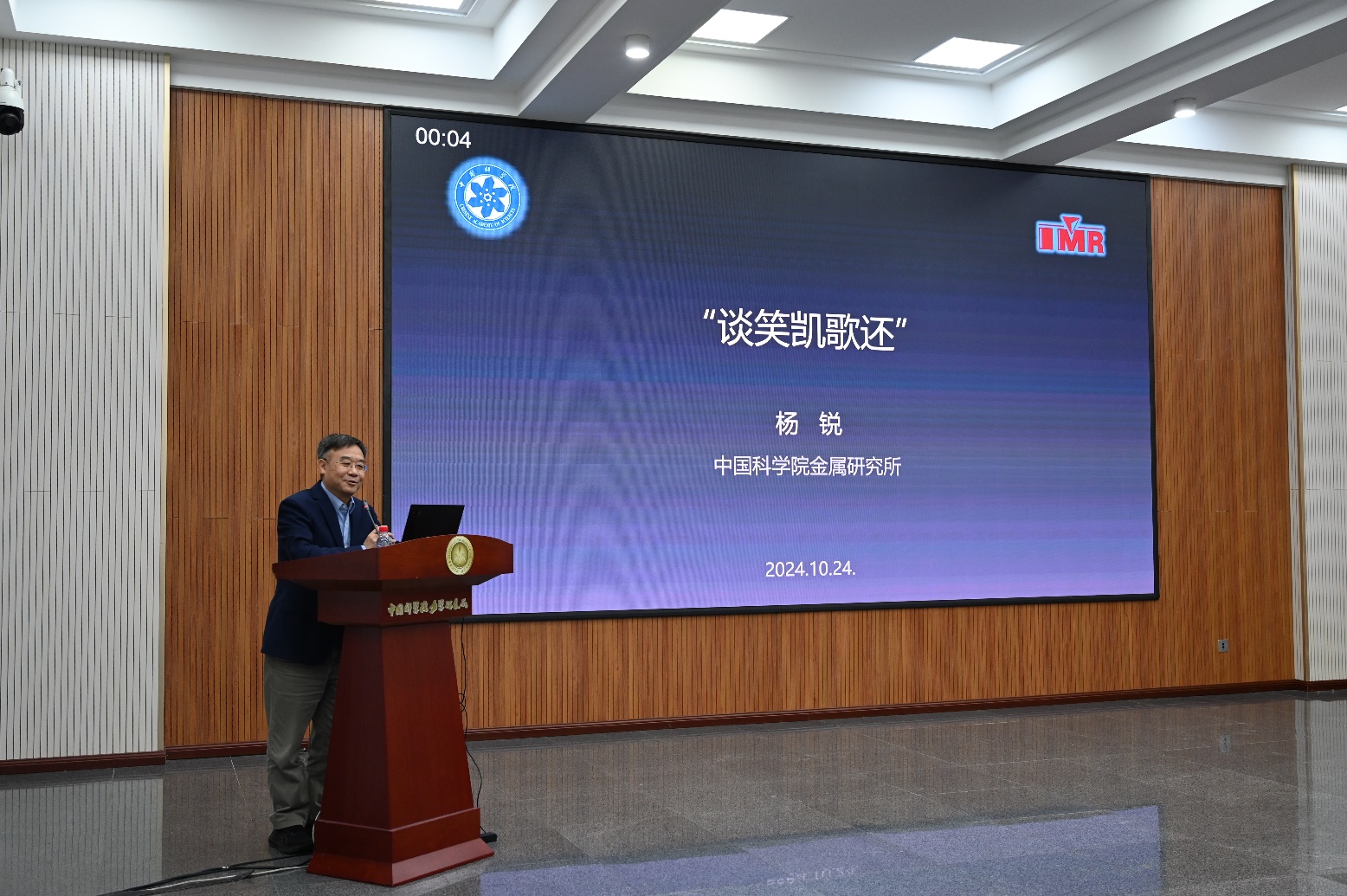 杨锐的讲座风趣幽默、内涵丰富,既有科研成果的展示,又有科研精神的传承,赢得了现场的热烈掌声。杨锐首先深情讲述了金属所与力学所的历史渊源,表达了对科学家精神的无限崇敬之情。随后,重点介绍了其团队在航空航天和深海探测领域取得的显著成就,为国家科技进步和经济发展作出的积极贡献。除了科研成果的分享,杨锐还强调了从事创造性活动的重要性。他提到,科技工作者一定要有专注和痴迷的精神,这种精神是科研工作的基石,也是取得重大成果的关键。杨锐用自己的亲身经历和团队的奋斗历程,生动诠释了这一精神内涵,激发了大家的科研热情和创新精神。