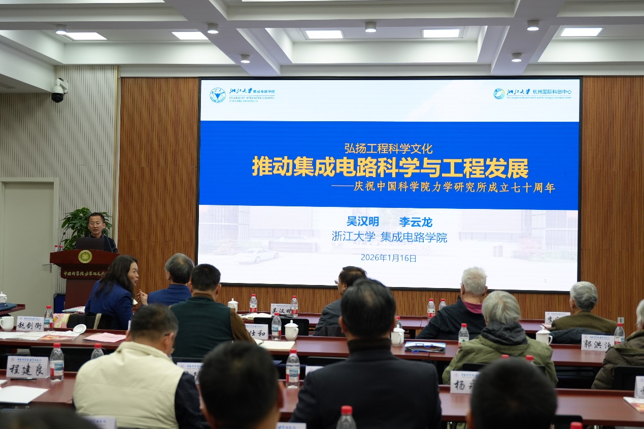 特邀报告环节分别由力学所纪委书记李强、副所长刘小明、副所长王展主持。魏悦广院士以《跨尺度力学研究的最新进展与展望》为题,深入剖析跨尺度力学领域的前沿动态与发展方向;郭旭院士以《计算力学发展思考与展望》为题,聚焦该领域关键技术与发展趋势展开深入探讨。浙江大学吴汉明院士团队李云龙教授作《弘扬工程科学文化,推动集成电路科学与工程发展》主题报告,分享其对集成电路产业发展的思考。特邀报告内容兼具理论深度与实践价值,赢得现场阵阵掌声。