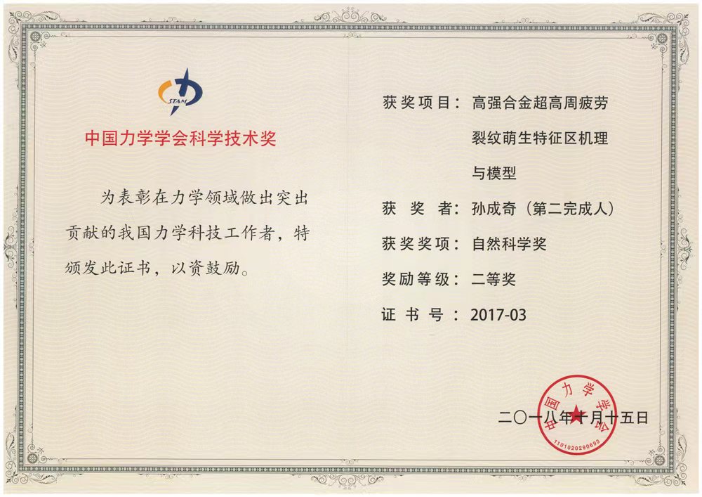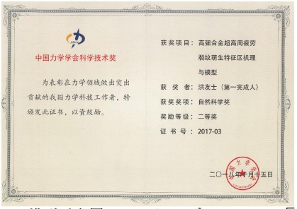 该成果发展了超高周疲劳的科学理论体系,完成人受邀10余次在重要国际会议大会报告,成果论文被广泛引用,引领了国际超高周疲劳研究的新发展。
