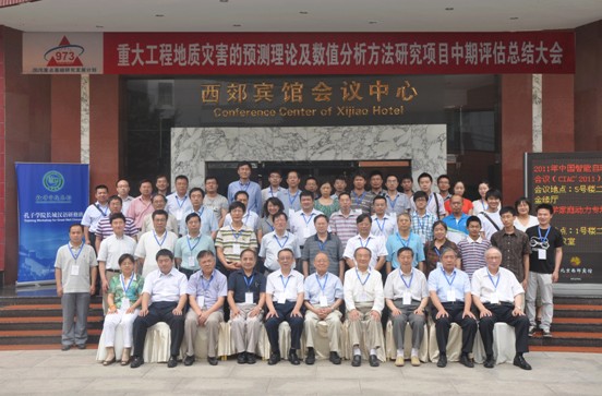 2011年8月6日,国家重点基础研究发展规划(973)项目《重大工程地质灾害的预测理论及数值分析方法研究》中期总结大会在北京西郊宾馆召开。科技部基础研究管理中心闫金定处长,项目管理专家燕琳高级工程师,项目专家组组长郑哲敏院士,项目责任咨询专家于景元研究员、林宗坚教授,项目专家组成员王思敬院士、钟万勰院士、李家春院士、蔡美峰教授、袁明武教授,项目外同行专家唐辉明教授、张国新教授、陶连金教授、魏群教授,项目首席科学家李世海研究员,各课题组长及骨干研究人员60余名代表参加了会议。
