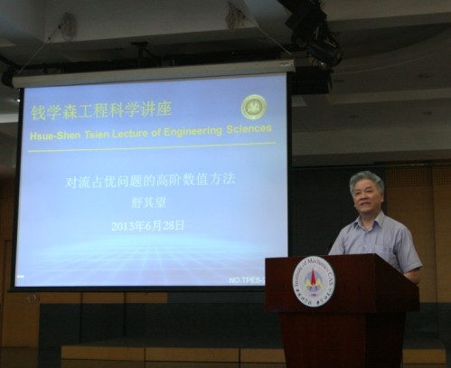 6月28日,美国布朗大学舒其望教授作为中国科学院力学研究所“钱学森工程科学讲座教授”应邀访问力学所,并作了题为“对流占优问题的高阶数值方法”的学术报告。报告会由所学术委员会主任李家春院士主持,近200位科研人员和研究生参加了报告会。