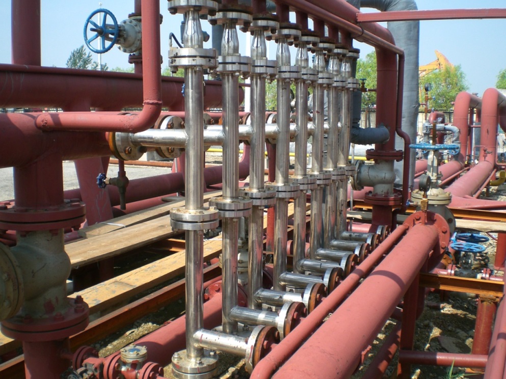 管道式油气水高效分离技术主要由柱型旋流分离器、导流片型管道式分离器、T型多分岔管路和动态CFU气浮选等组成,突破了传统的采用大型储罐进行油气水分离的作法,使分离效率成倍提高。这种小型、紧凑、高效、快速的分离系统,由于工艺流程简单高效,且可在相对较低的温度和压力下密闭运行,有效减少储罐系统、加热系统、电脱水系统、污水处理系统、以及相应的管汇系统和控制系统,具有经济、节能、简捷、安全等优点,从而可极大地节省油田原油处理的投资费用,对我国油田的开发和工艺进步能起到积极作用。