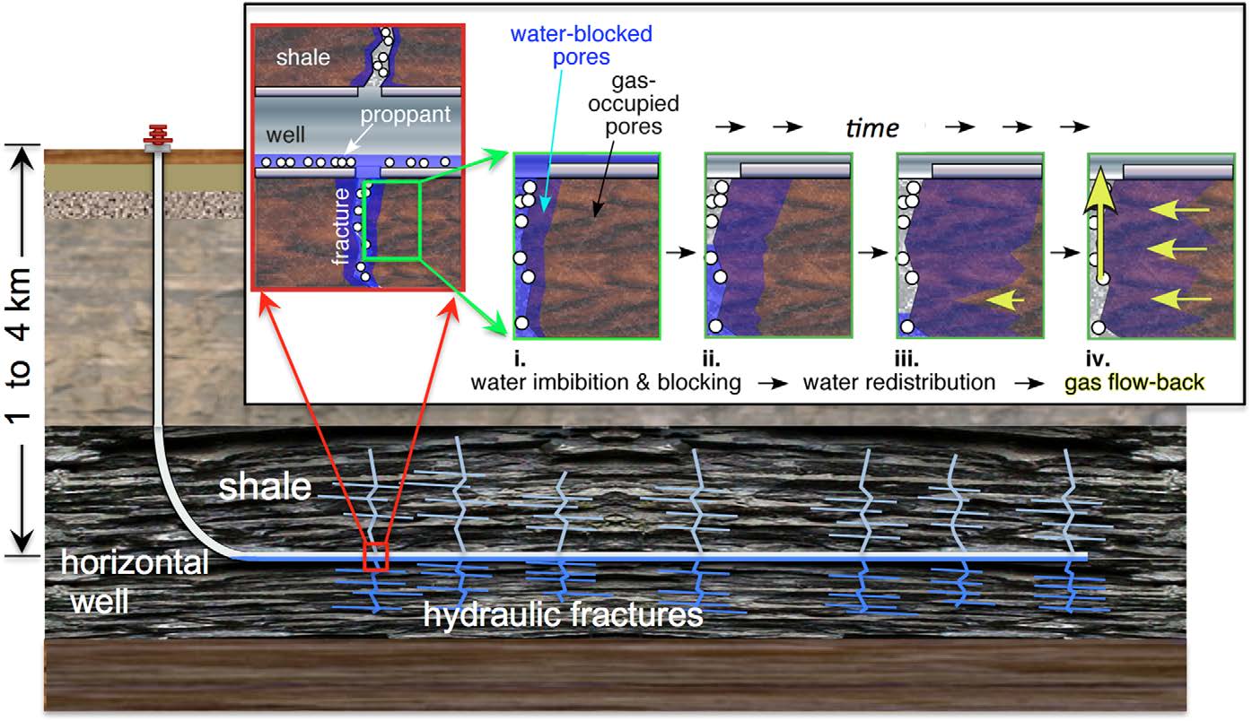 随着世界经济对油气资源需求的日益增加,非常规页岩气资源的开发利用备受关注。由于页岩气藏具有独特的存储和低渗特征,水平井完井和水力压裂技术是成功开发页岩气藏的关键技术。但在水力压裂过程中,只有少部分的压裂液在清洗阶段被回收,大部分压裂液滞留在页岩地层中,水锁问题严重影响着页岩气藏的有效开发。因此,开展页岩气藏气水流动机理研究,对于页岩气藏的高效开发具有重要的理论指导意义。近年来,中国科学院力学研究所、中国石油勘探开发研究院和美国劳伦斯伯克利国家实验室等科学家通过合作在这一方面取得了重要进展。