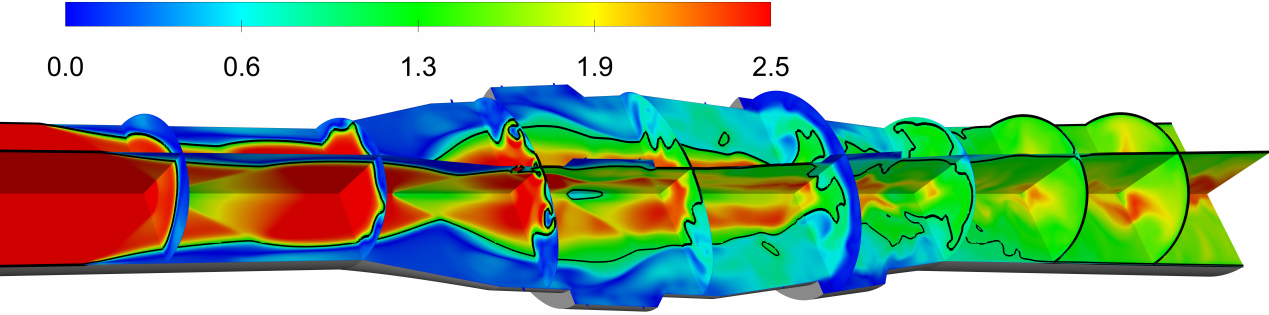图2. 代表性算例(RdEST超声速燃烧室内部马赫数分布大涡模拟)